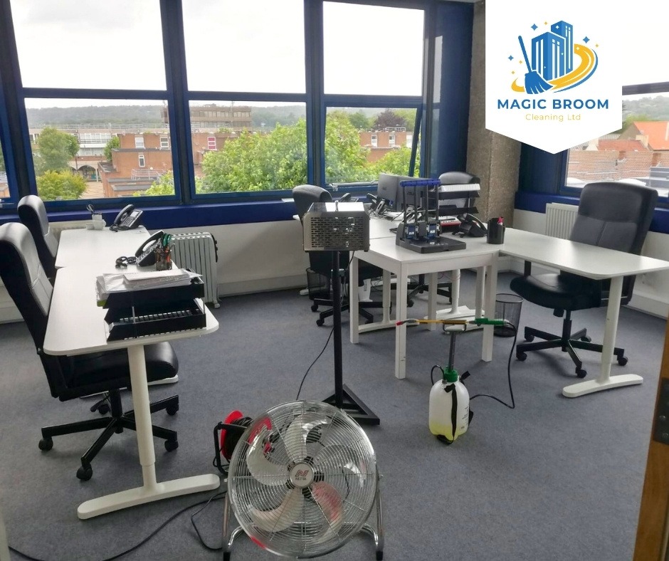 Ozone Treatment for Commercial Cleaning in Bristol. Keeping your workplace safe and spotless is essential. For offices and commercial spaces across Bristol, ozone treatment offers a deep, residue-free disinfection step that reaches the places wipes miss and neutralises odours without harsh chemicals. Because ozone must be used in unoccupied areas and handled correctly, it’s precisely the kind of service that should be delivered by a certified, experienced provider like Magic Broom.
